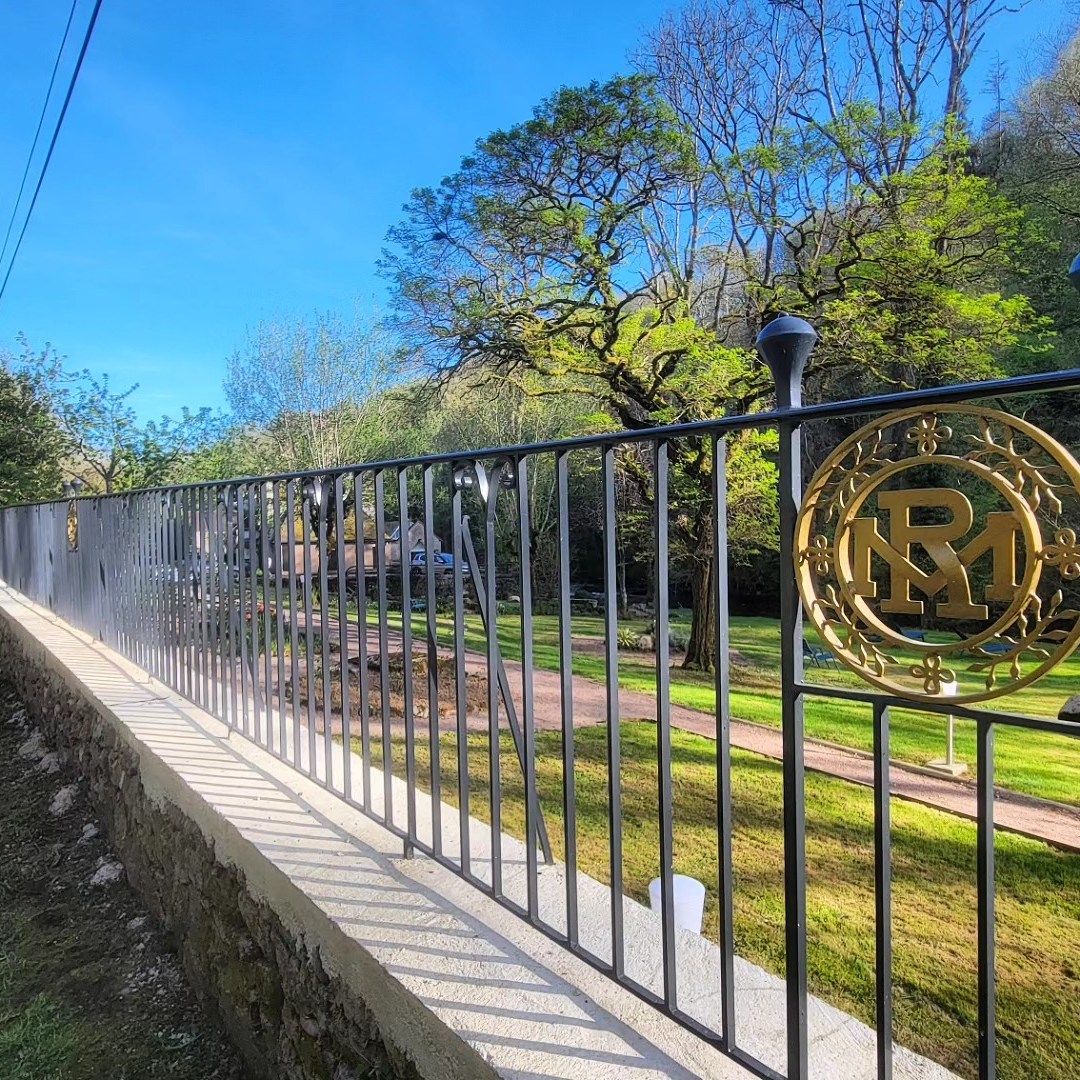 La clôture peut être à barreaux, à volutes ou à lisses horizontales ou courbes, avec différents éléments d’habillage.