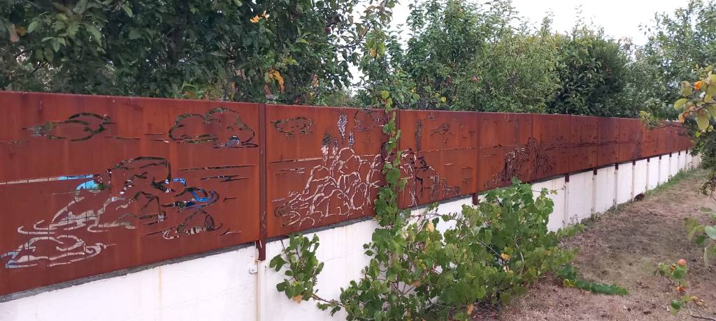 Les Fresques peuvent être en divers matériaux comme de l’acier Corten, ou bien inclure des éléments métalliques comme des feuilles de cuivre ou des habillages en laiton.